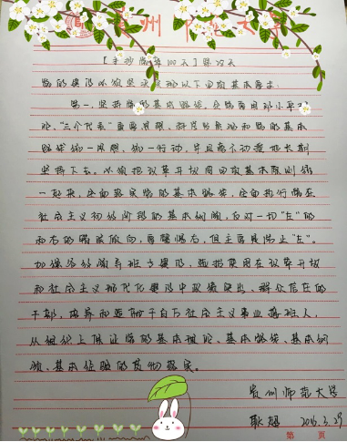 在每周四,从各党支部党小组推荐上来的作品中,我们会精选此前一周的作品予以表扬并发表。抄写的过程,内心的宁静,本身就是对自己的奖励。本周手抄党章的优秀作品很多,远不止下面这些,大家相互学习借鉴一下。 ...