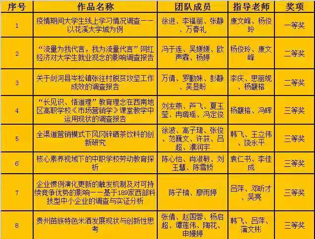 公司学子在第十七届“挑战杯”贵州省老员工课外学术科技作品竞赛决赛中荣获一等奖1项,获二等奖2项,获三等奖5项。