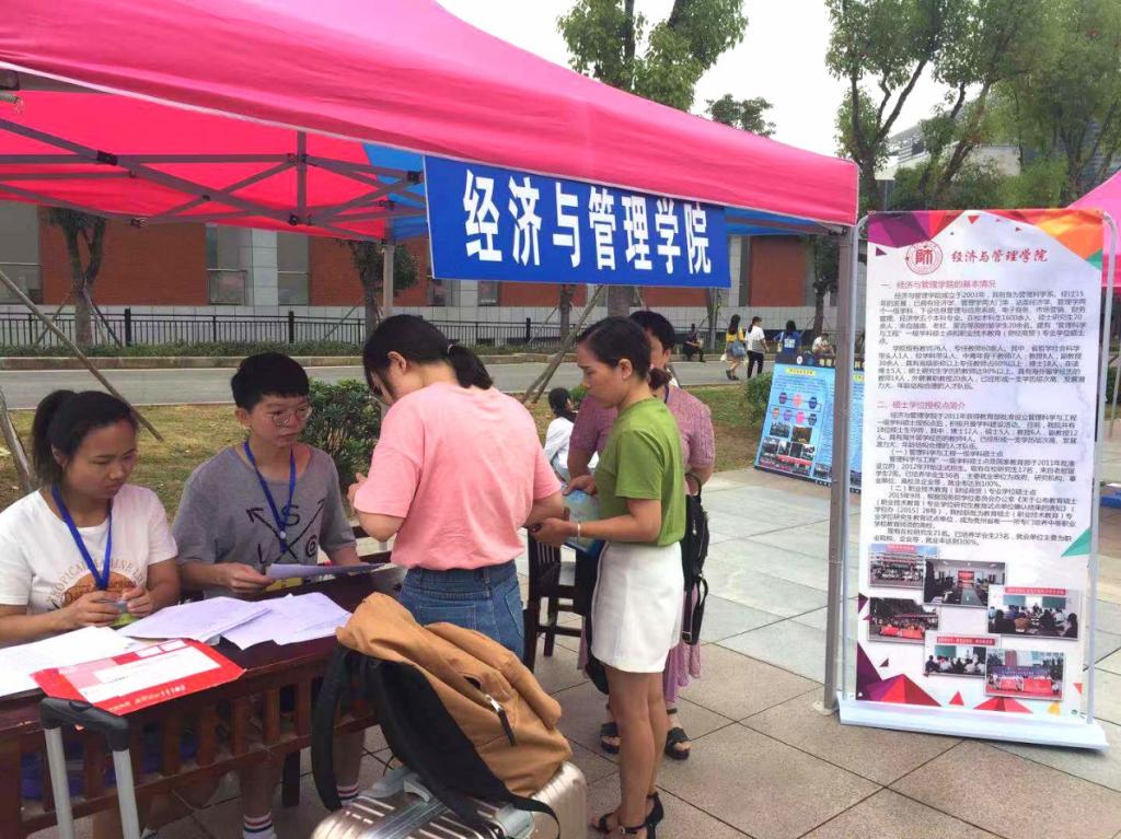 8月29日,英国365集团公司官网迎新工作小组在行政楼前迎新点迎接2019级研究生新生入学报到。
