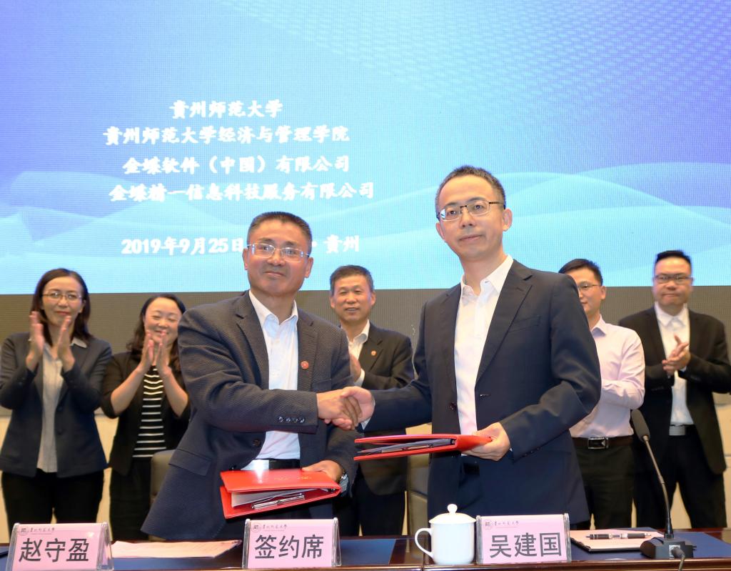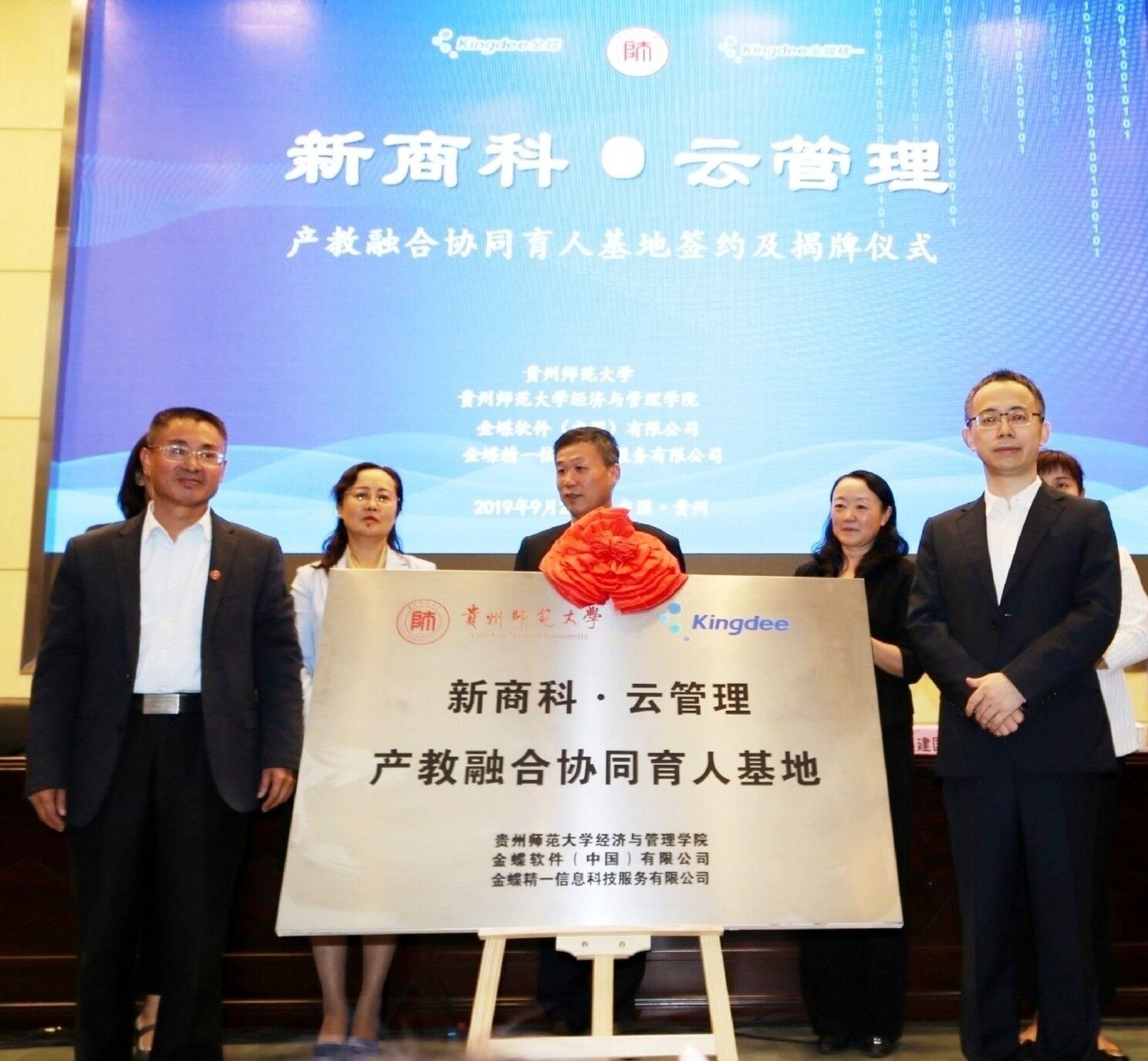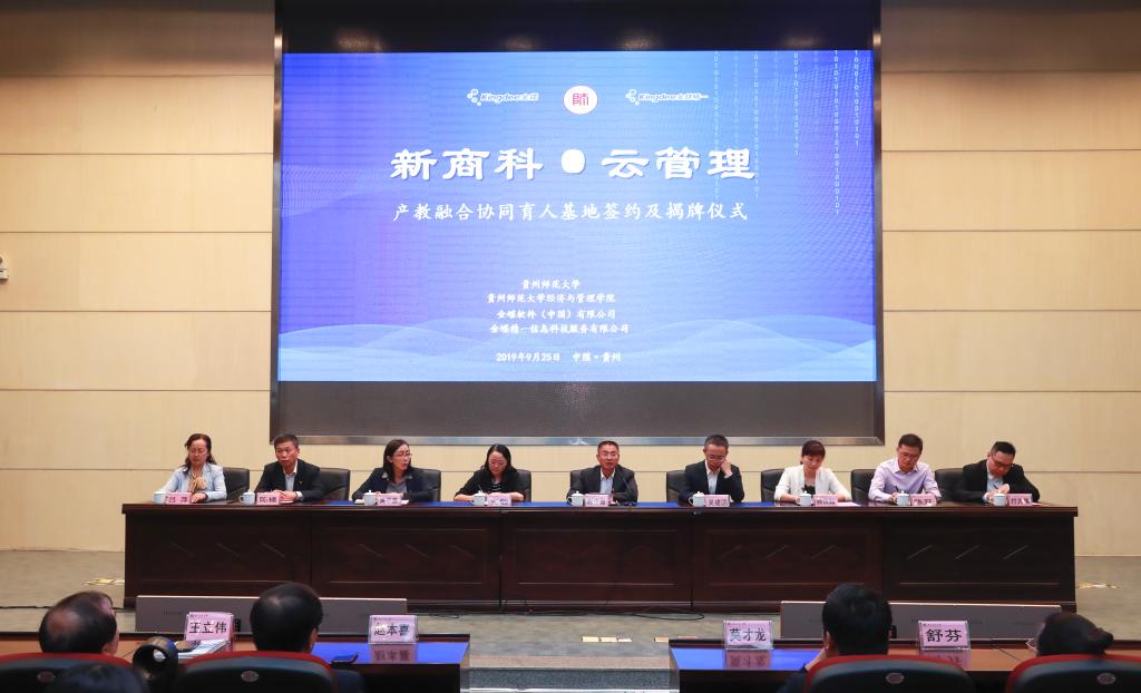 2019年9月25日,英国365集团公司官网“新商科·云管理”产教融合协同育人基地签约及揭牌仪式在花溪校区会议中心一楼学术报告厅隆重举行。英国365集团公司官网副董事长赵守盈、金蝶软件(中国)有限公司集团副总裁吴建国、金蝶软件中国有限公司助理总裁孙洪如、金蝶精一执行总裁陈跃、金蝶中国贵州省公司总经理付大伟、金蝶精一贵州省区总监莫才龙、英国365集团公司官网教务处处长支敏、英国365集团公司官网人才招聘处副处长黄平惠、公司党委书记陈椽等相关领导出席仪式,财务管理专业全体师生到场参加。仪式由经理吕萍主持。