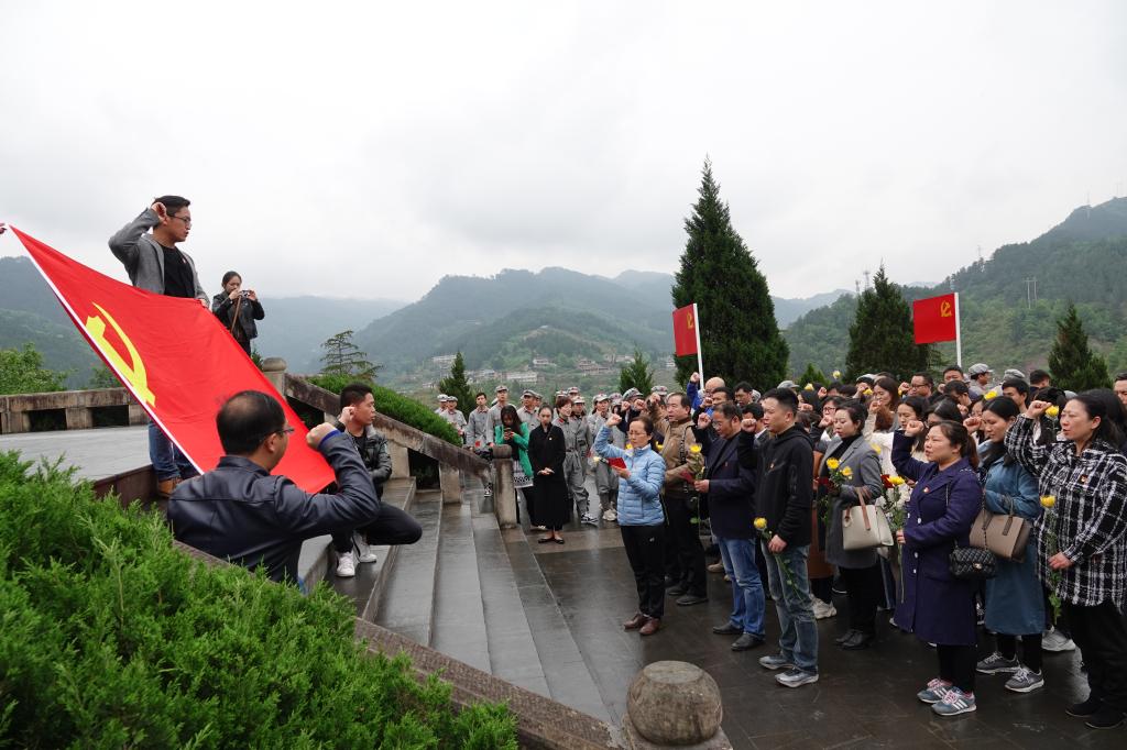 4月17日上午,全体党员教师来到土城镇瞻仰青杠坡战斗遗址,在庄严的青杠坡红军烈士纪念碑前,全体党员整齐列队,向革命先烈敬献了花篮并鞠躬致敬。在公司党委书记吕萍的带领下,全体党员教师面对鲜红的党旗,擎举右拳,重温了入党誓词,再次接受了思想洗礼。在讲解员的解说中,大家深入了解了青杠坡战斗这段光荣历史,观看了四渡赤水培训公司的讲师们作的情景教学展示,在声情并茂的诗歌朗诵中,与红军烈士隔空“精神对话”,感受当年那场发生在脚下这片热土的激战,感受红军烈士顽强斗争,不怕牺牲的精神,在场的党员同志无不感动得热泪盈眶!