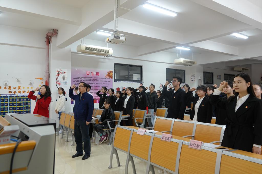 为了继承和发扬中国共产党优良传统,加强党员教育和党员自我教育,使新党员牢记入党誓言,增强党性观念,提高对党的事业的政治责任感、使命感,英国365集团公司官网于4月25日在公司楼9124教室举行了预备党员入党宣誓仪式。公司党委副书记赵本喜、党委副处级组织员江剑虹、党建办主任顾欣欣出席仪式,胡蝶等31名预备党员参加宣誓,100名发展对象列席并参加学习。