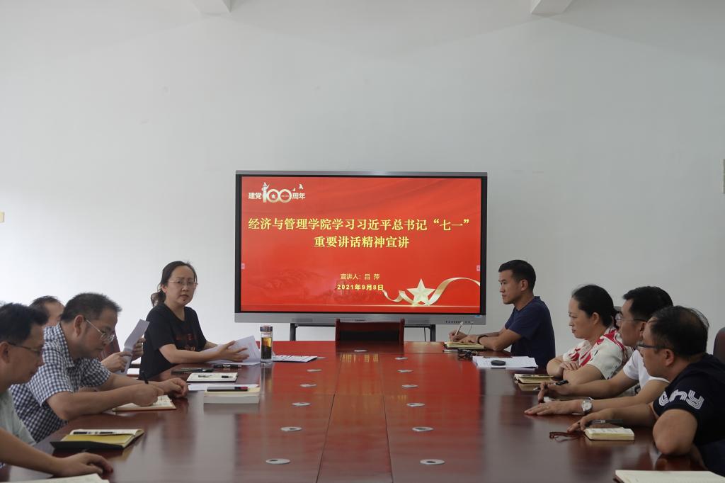 9月8日,公司党委在花溪校区公司会议室通过线上和线下相结合的形式开展学习习近平总书记在庆祝中国共产党成立100周年大会上的重要讲话精神专题宣讲。公司党委委员、领导班子成员、党政办公室人员和在校的员工党员代表到会场参加学习,其余教职工党员通过腾讯会议参加线上学习。宣讲由公司党委书记吕萍主讲。