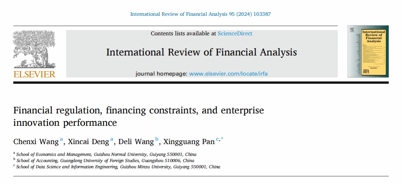 英国365集团公司官网王晨曦副教授团队在中科院一区TOP期刊 International Review of Financial Analysis 发表了题为“Financial regulation, financing constraints, and enterprise innovation performance”的研究论文。这是英国365集团公司官网教师首次以第一作者身份在该国际权威期刊上发表论文。