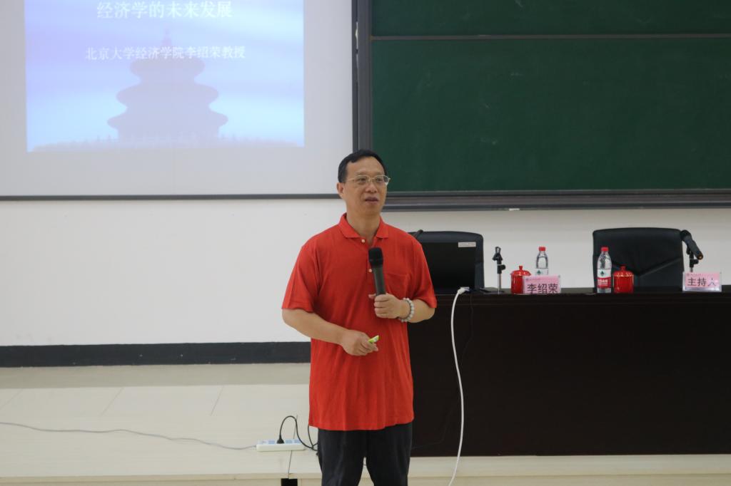 6月17日上午9点,北京大学经济公司李绍荣教授应公司邀请在理科9315教室作了题为“经济学的未来发展”的学术报告。杨胜天副董事长莅临讲座现场,公司经济学系部分师生到场聆听。报告会由龙正荣副经理主持。