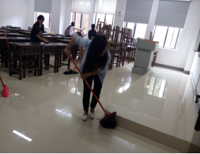 本次打扫主要是对教室的清扫,活动过程中,“同学们热情洋溢、互帮互助,充分体现了理公司员工组织队伍阳光向上、精神饱满的良好状态。同学们针对墙面污点、卫生死角、桌椅摆放、地面灰尘等问题进行了不同方式的处理,都取得了较好的效果,使整个教室焕然一新。96期发展对象均表示,将一片狼藉的教室打扫得焕然一新,以此为新生们送去最诚挚的祝福和欢迎,愿他们在经管这一片新天地创造出更多的美好!