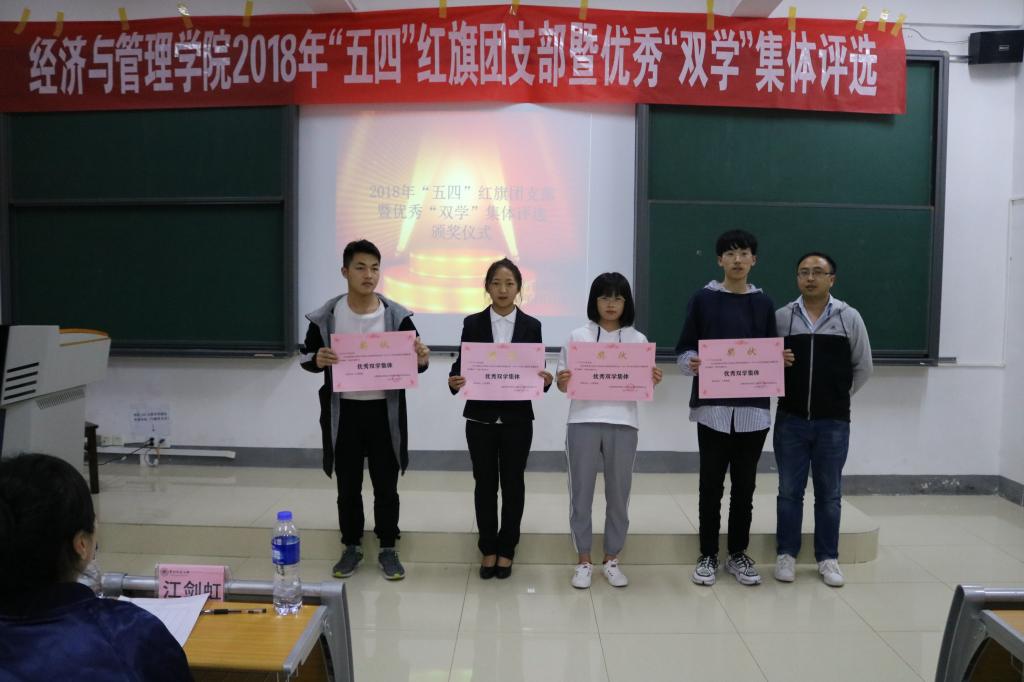 各团支部通过现场PPT演说的形式展示了本支部2018年度在团组织建设、双学学习、活动创新等方面取得的成效。各支部准备充分,表现出色,竞争十分激烈。最终,2016级市场营销、2017级电子商务、2018级市场营销和2018级经济学团支部被评为2018年度“五四”红旗团支部。2016级信息与管理系统、2017级财务管理、2018级财务管理和2018级市场营销班被评为2018年度优秀“双学”集体。