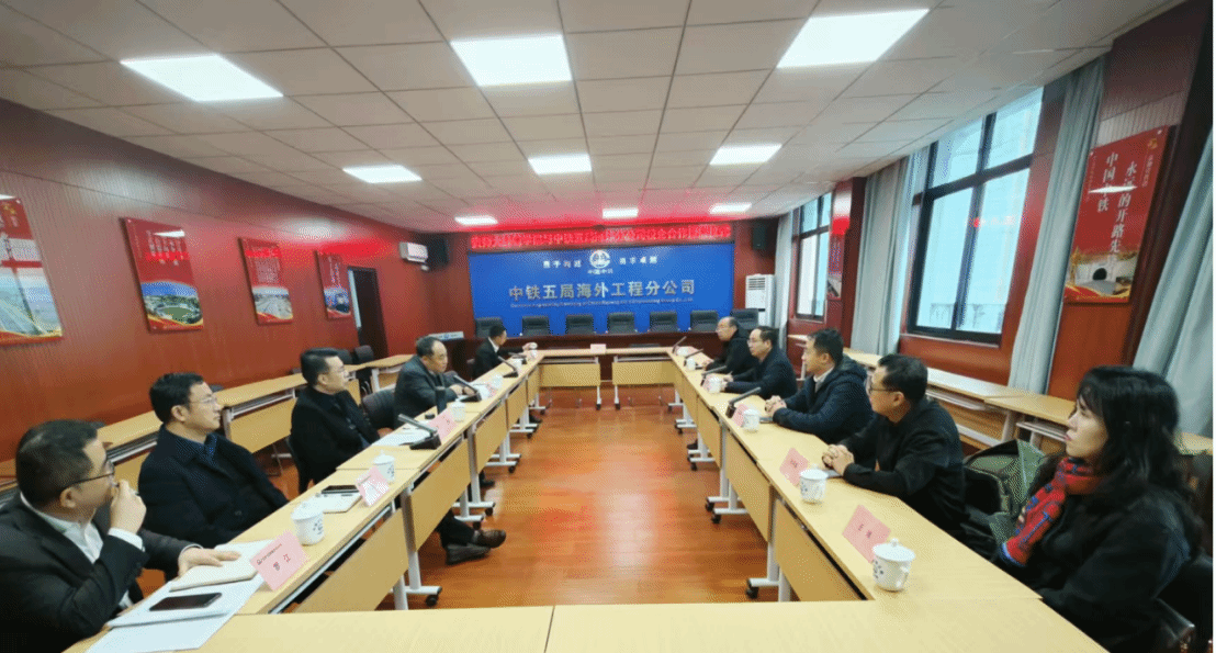 2025年1月15日上午,为深化校企合作与产教融合,英国365集团公司官网与中铁五局集团有限公司海外工程分公司在海外工程分公司总部会议室联合举办了校企合作人才建设座谈会及签约授牌仪式。